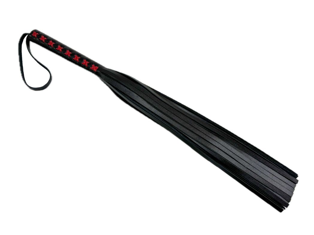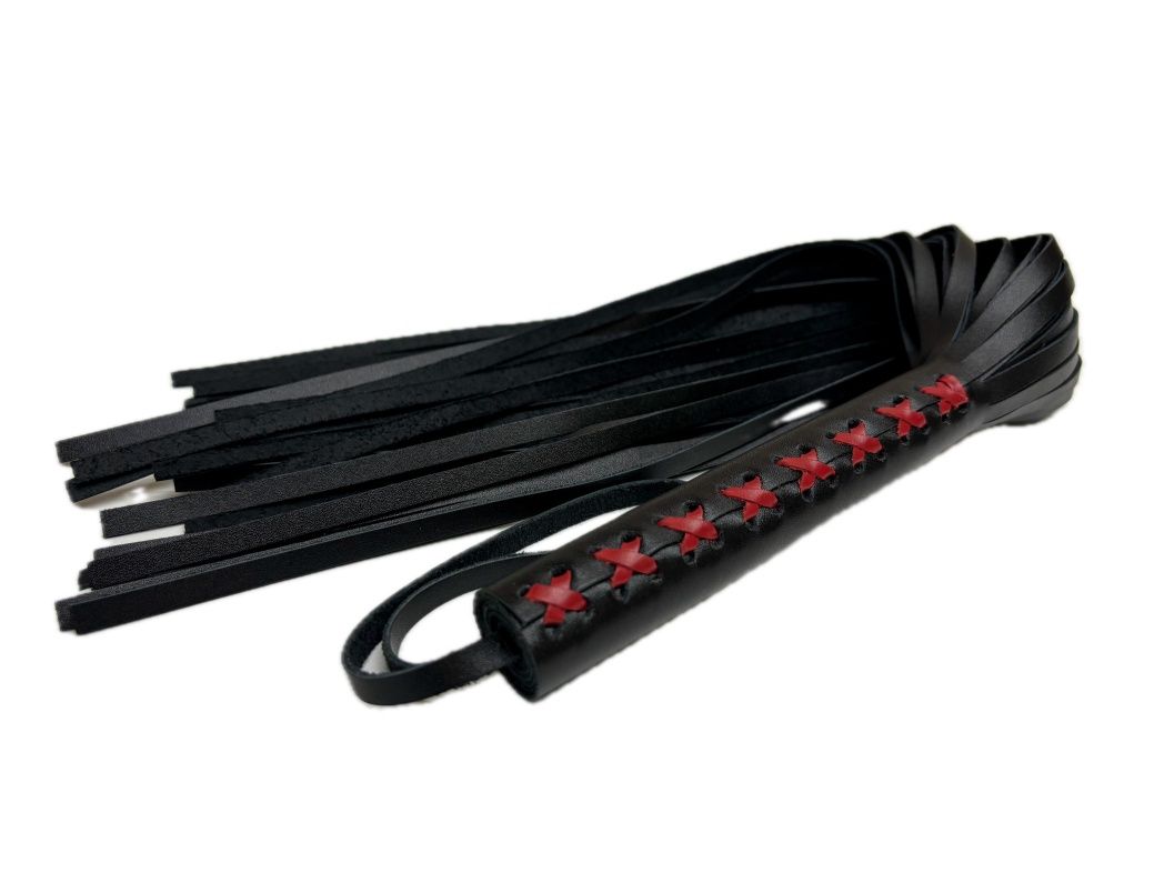Плеть из натуральной кожи Sex Game - уникальная модель, выполненная из цельного куска гладкой натуральной кожи высокого качества. Плеть очень пышная и богатая, в ней 50 хвостов! На рукоятке находится плетение, выполненное красной кожей, что придает особый шарм. Благодаря своей цельной конструкции, данная плеть прослужит Вам долго, хвосты не оторвутся и сохранят свой благородный вид, аксессуар очень надежный и красивый. Для удобства на рукоятке имеется кожаная петелька. Длина хвостов - 40 см.