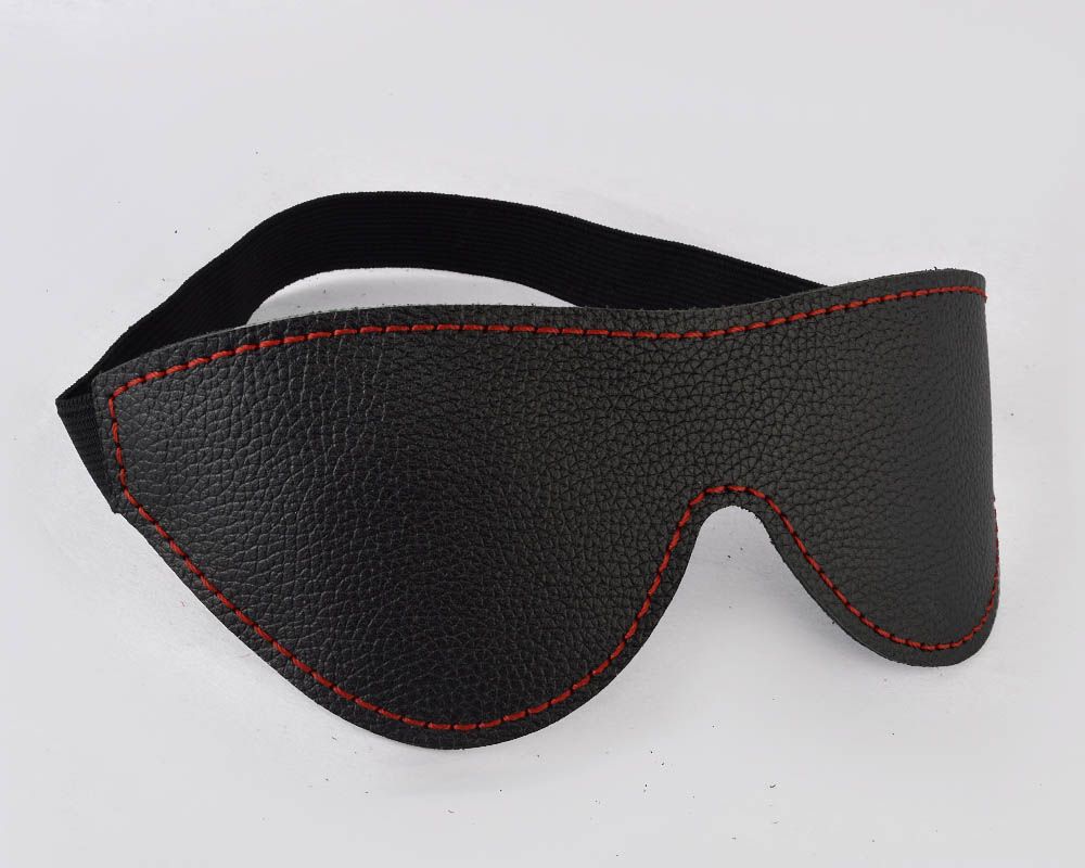 Маска изготовлена из натуральной кожи и дополнена красной декоративной строчкой.