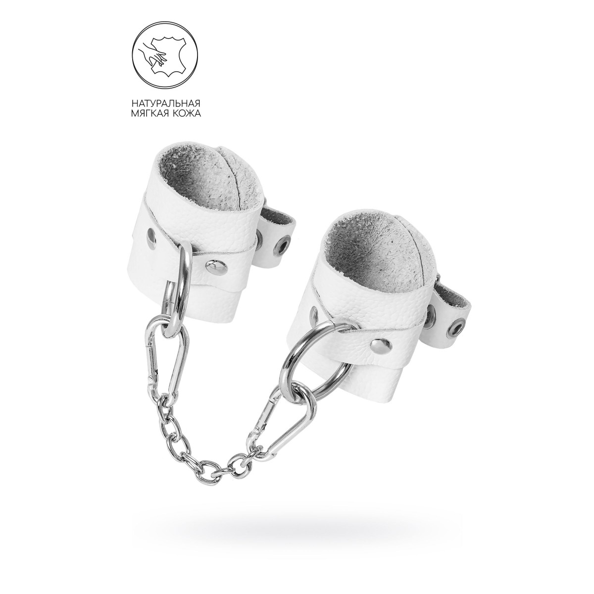 Самый мягкие наручники из всего ассортимента Pecado. Лаконичный дизайн, насыщенно белый цвет и терпкий аромат материала - повышают градус возбуждения в процессе ролевых игр. Наручники выполнены из экологичной и натуральной кожи. Полностью ручная выделка материала обеспечивает хорошую износостойкость. Каждый миллиметр аксессуара очень тактильно приятный. Манжеты и ремешки не мнутся. При правильном использовании не оставляют следов на запястьях. Благодаря стальной застежке и отверстиям с люверсами можно подобрать нужный обхват. Между собой наручники соединены с помощью карабинов и короткой цепочки. При необходимости ее можно снять и заменить на более длинный вариант. Используется для того, чтобы обездвижить партнера и зафиксировать руки в необходимом положении. Подходит как маститым знатокам БДСМ-культуры, так и начинающим парам. Длина манжет – 18 см, ширина - 5,5 см. Длина сцепки – 20 см.