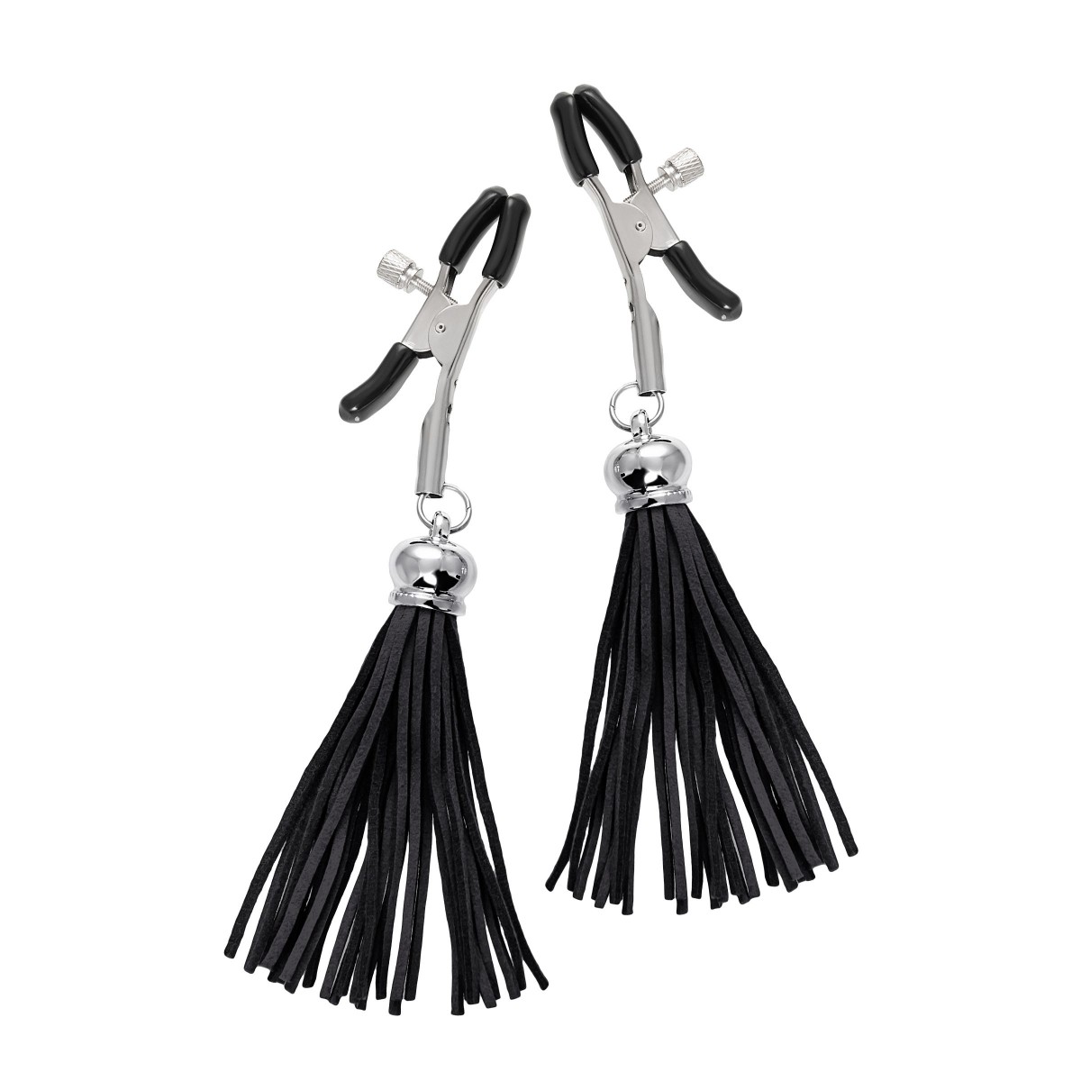 Хотите усилить ощущения от страстных игр с партнером? Увеличить степень возбуждения до невозможного можно с помощью зажимов-прищепок ручной работы от Рecado. Невероятно сексуальный аксессуар пробудит фантазию и повысит чувственность эротических зон. Мягкие резиновые накладки оберегают соски от повреждений. Металлический винт регулирует степень сжатия зажимов: от нежно-приятного до сильно-грубого. На концах черные резиновые наконечники, для безопасного воздействия на нежные участки тела. Компактный размер удобно вмещается как в женскую, так и в мужскую руку. Кисточки из натуральной замши не только визуально украшают эротический атрибут, но и еще утяжеляют его. Для самых смелых и искушенных любителей доминировать и подчиняться.● Ручная работа.● Надежная высококачественная фурнитура. Длина кисточки - 8,5 см.