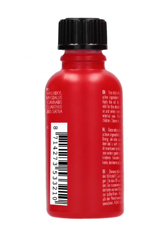 Это стимулирующее масло содержит активный ингредиент CBD (каннабидол). Чувственное сочетание натуральных масел и выжимки из семян конопли высшего сорта, созданное для того, чтобы по-новому ощутить более яркий, сильный и глубокий оргазм. Это возбуждающее сочетание ингредиентов усиливает приток крови, стимулирует выработку естественной смазки, обостряет ощущения и откроет вам совершенно неизведанный мир. Нанесите на интимную область небольшое количество масла с помощью кисти и массажными движениями нанесите непосредственно на клитор. Если есть желание можно нанести дополнительное количество масла через 5 минут. В течение нескольких секунд большинство женщин испытывают теплое, приятное покалывание или ощущение вибрации. Исключительно для наружного применения.