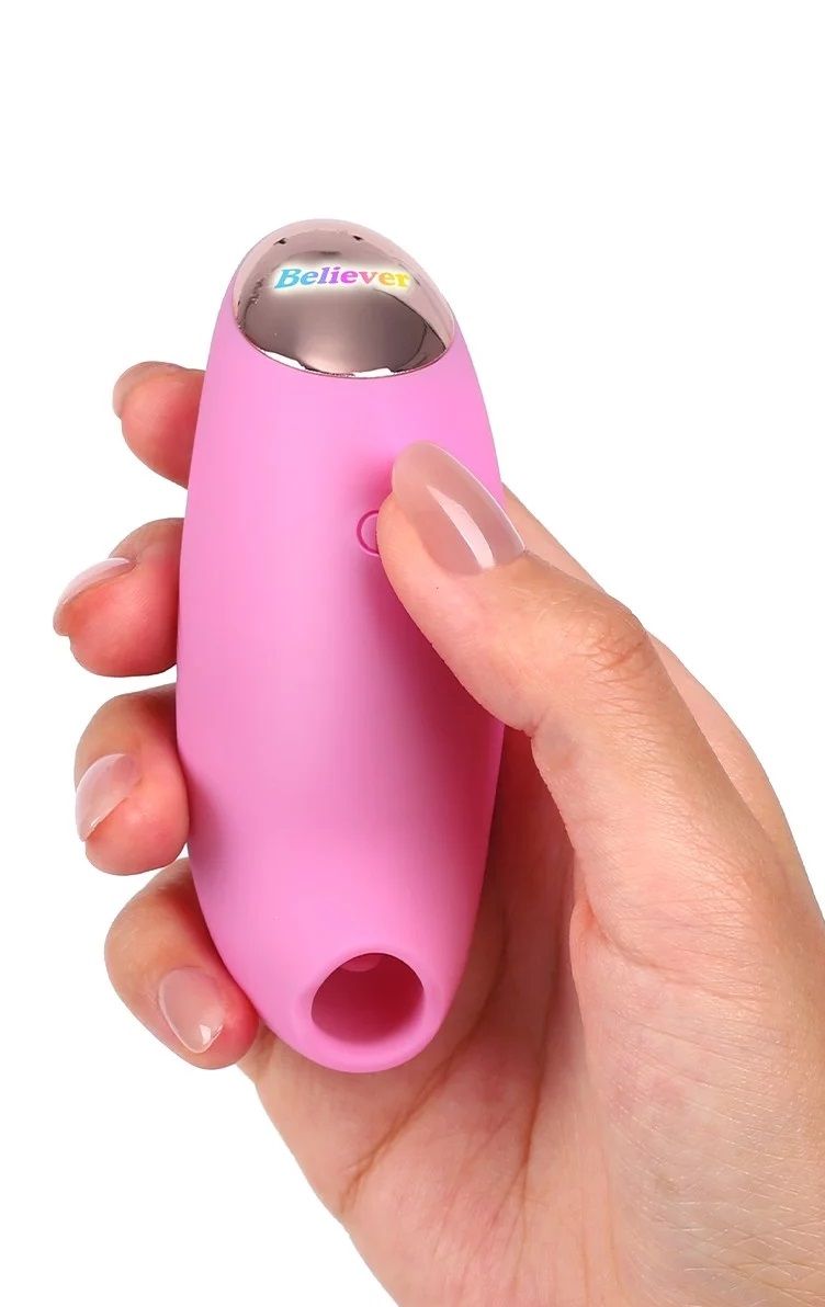 Вакуумный стимулятор Believer c посасывающим эффектом и имитацией оральных ласк. В игрушке расположена мембрана с язычком, которые совершают движения вверх-вниз. 5 режимов интенсивности. Эргономичная форма, водонепроницаемость.