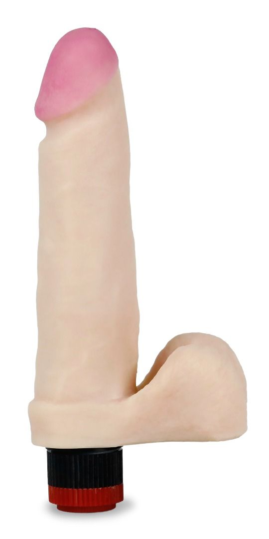 Реалистичный вибратор во всех отношениях. Сгибается до 60%, эластичный. Нежная, но в то же время упругая мошонка. Мягкая головка, залитая гелем. Пищевая краска на головке, которая смывается после первого использования. Это показатель того, что изделие в первых руках. Встроенный вибромеханизм с регулятором интенсивности вибрации на самом изделии. Группа изделий с использованием технологии протезирования. Композитная структура с полужестким, эластичным каркасом и сверхмягким атравматичным покрытием из ультрасовременного материала неоскин. Диаметр головки - 3,9 см.