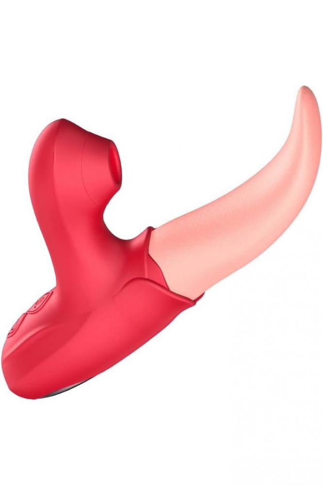 Вагинально-клиторальный вибратор с уникальным дизайном подарит незабываемые ощущения благодаря своей многофункциональности. Вагинальная часть выполнена в виде языка и оснащена 10 режимами вибрации, создавая волнующие ощущения, а клиторальная часть включает 10 режимов вибрации и легкого всасывания. Режимы в вагинальной и клиторальной частях могут быть активированы как отдельно, так и одновременно, что позволяет варьировать ощущения и найти оптимальную комбинацию для максимального удовольствия. Вибратор имеет две кнопки для удобного управления: долгим нажатием включается устройство, а коротким нажатием переключаются режимы. Рабочая длина — 9 см.
